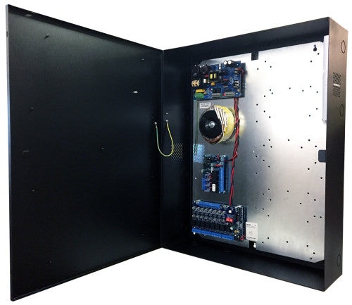 Altronix T2KHK3F12D kit consists of Trove2 enclosure, TKH2 Kantech/Altronix backplane with one (1) 12VDC or 24VDC @ 6A power supply/charger, one (1) eight (8) output PTC access power controller, one (1) four (4) output PTC access power controller and one (1) 16VAC/18VAC transformer.