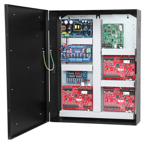 Altronix T2M7XK2 is a 6-door access and power integration kit which includes Altronix power and sub-assemblies along with factory installed wire management and wire assemblies that are pre-configured with terminal blocks for Mercury* hardware. This unit provides ample power and dual voltage outputs to support Mercury platform controllers and locking devices. The T2M7XK2 accommodates one (1) Intelligent Reader Controller and three (3) Dual Reader Interface Modules. Trove Plus simplifies field installations and provides reliable, robust critical power and control for the most demanding applications.