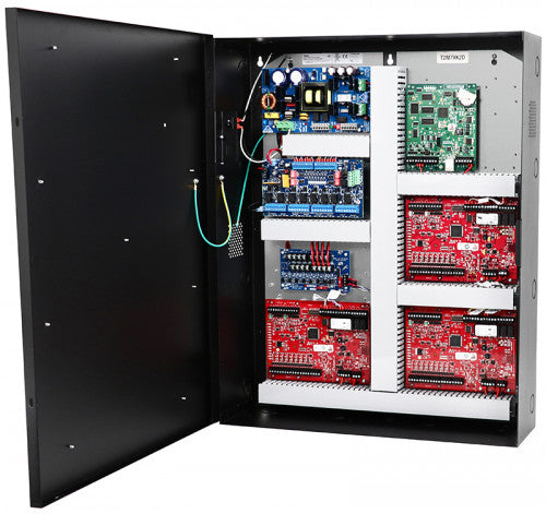 Altronix T2M7XK2D is a 6-door access and power integration kit which includes Altronix power and sub-assemblies along with factory installed wire management and wire assemblies that are pre-configured with terminal blocks for Mercury* hardware. This unit provides ample power and dual voltage outputs to support Mercury platform controllers and locking devices. The T2M7XK2D accommodates one (1) Intelligent Reader Controller and three (3) Dual Reader Interface Modules. Trove Plus simplifies field installations and provides reliable, robust critical power and control for the most demanding applications.
