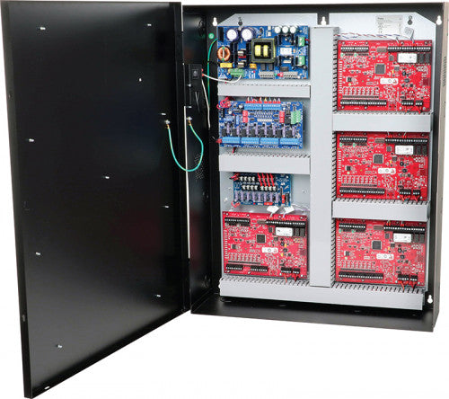 Altronix T2M7XK3 is a 8-door access and power integration kit which includes Altronix power and sub-assemblies along with factory installed wire management and wire assemblies that are pre-configured with terminal blocks for Mercury* hardware. This unit provides ample power and dual voltage outputs to support Mercury platform controllers and locking devices. The T2M7XK3 accommodates four (4) Dual Reader Interface Modules. Trove Plus simplifies field installations and provides reliable, robust critical power and control for the most demanding applications.