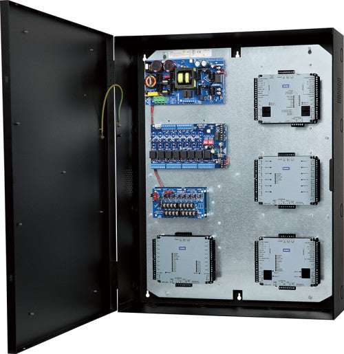 Altronix T2VK78V kit consists of Trove2 enclosure, TV2 VertX®/Altronix backplane with one (1) 24VDC @ 10A power supply/charger, one (1) fused access power controller, one (1) voltage regulator and one (1) dual input fused power distribution module. This kit also accommodates up to four (4) HID VertX® modules for up to eight (8) doors in a single enclosure. Trove simplifies board layout and wire management, reduces installation time