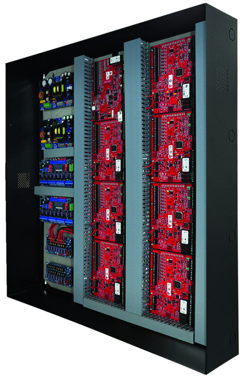 Altronix T3M77XK2 is a 14-door access and power integration kit which includes Altronix power and sub-assemblies along with factory installed wire management and wire assemblies that are pre-configured with terminal blocks for Mercury hardware. This unit provides ample power and dual voltage outputs to support Mercury platform controllers and locking devices. The T3M77XK2 accommodates one (1) Intelligent Dual Reader Controller and seven (7) Dual Reader Interface Modules. Trove Plus simplifies field installations and provides reliable, robust critical power and control for the most demanding applications.