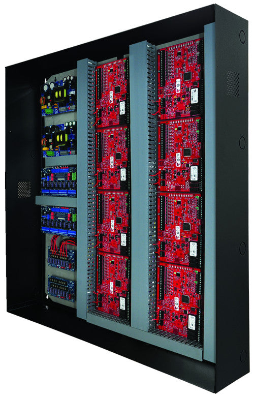 Altronix T3M77XK3 is a 16-door access and power integration kit which includes Altronix power and sub-assemblies along with factory installed wire management and wire assemblies that are pre-configured with terminal blocks for Mercury hardware. This unit provides ample power and dual voltage outputs to support Mercury platform controllers and locking devices. The T3M77XK3 accommodates up to eight (8) Dual Reader Interface Modules. Trove Plus simplifies field installations and provides reliable, robust critical power and control for the most demanding applications.