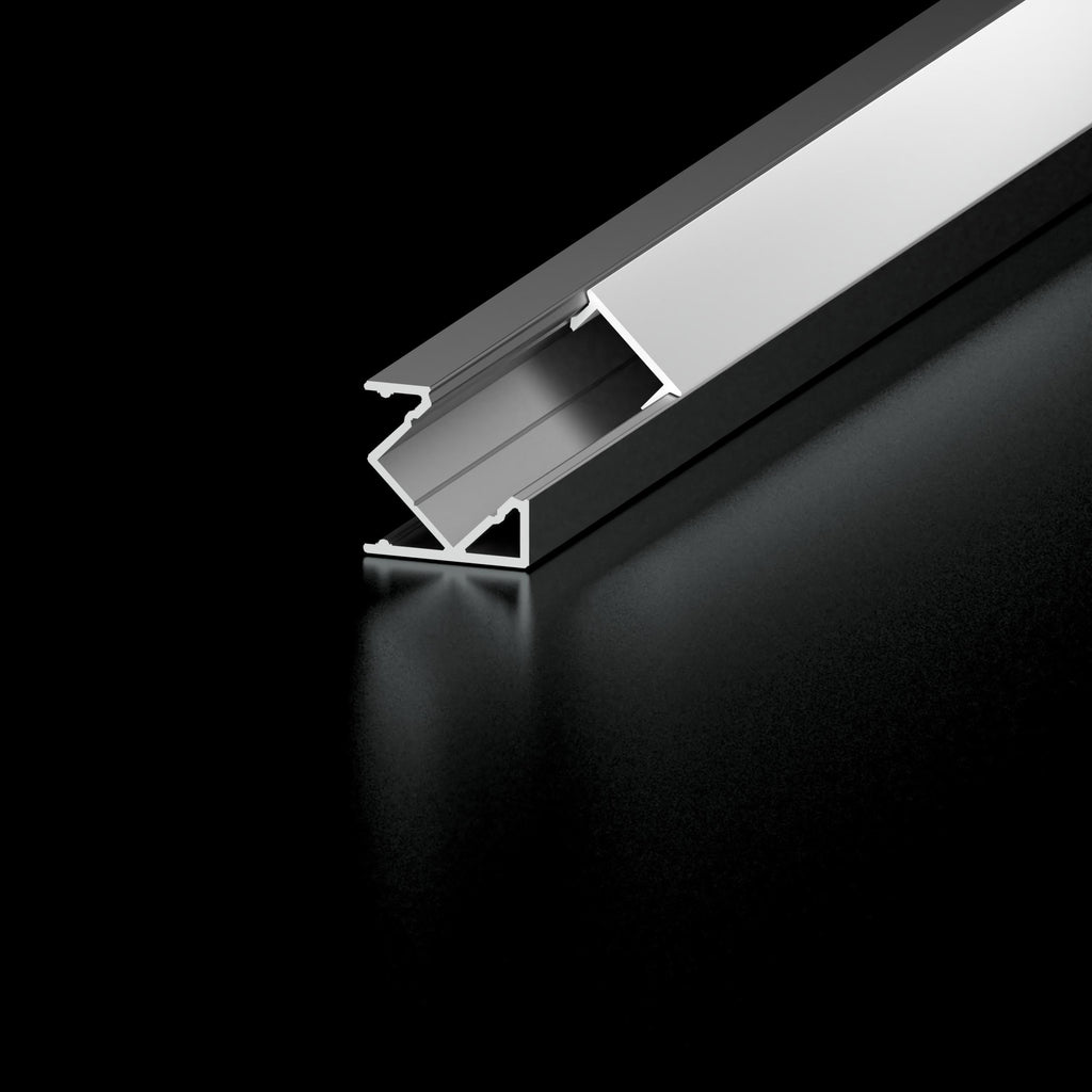 Discreet 45º profile with concealed mounting.
