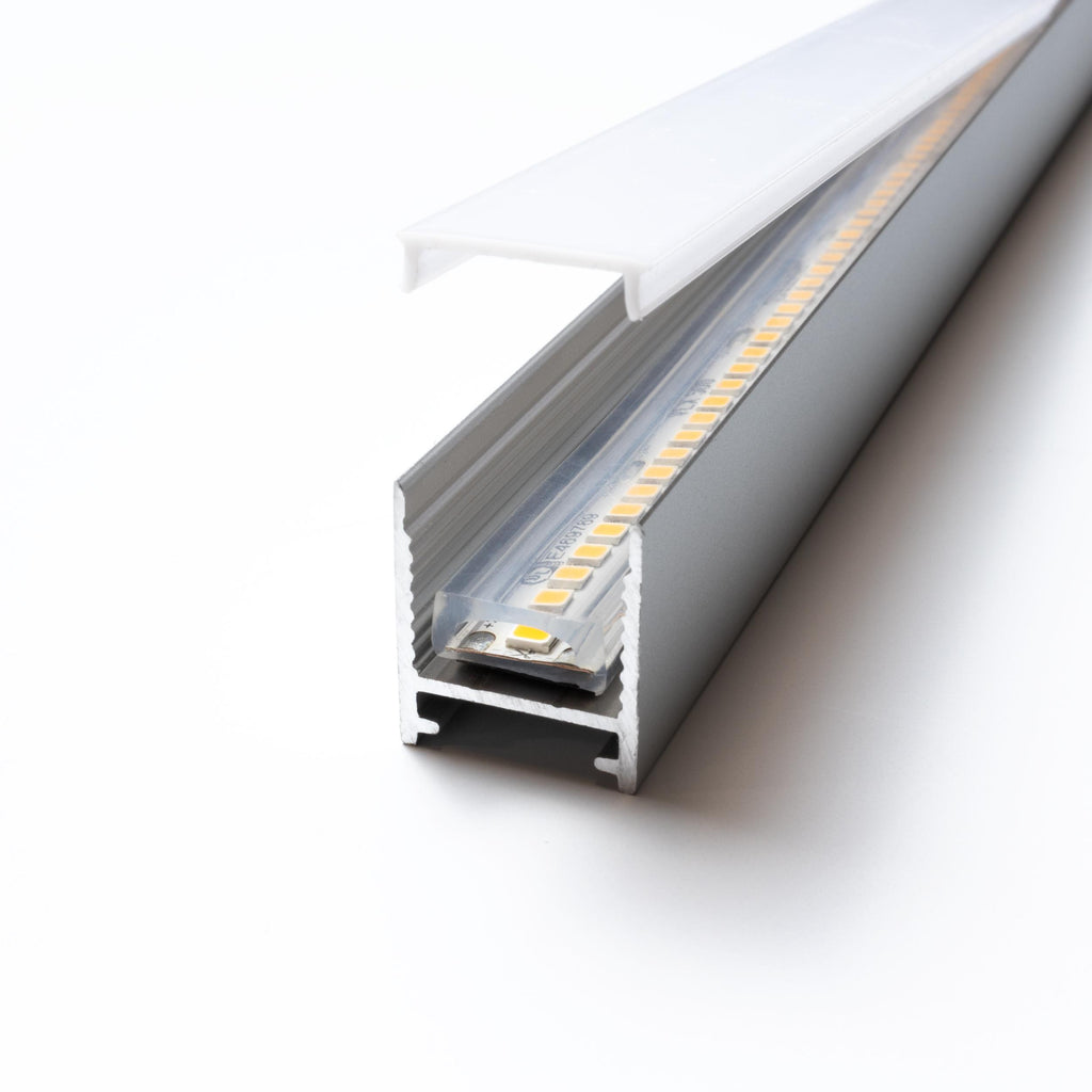 Mounting channel for use with dry and wet location tape light. Install with either dry location, or wet location LED tape light for a clean, professional look.