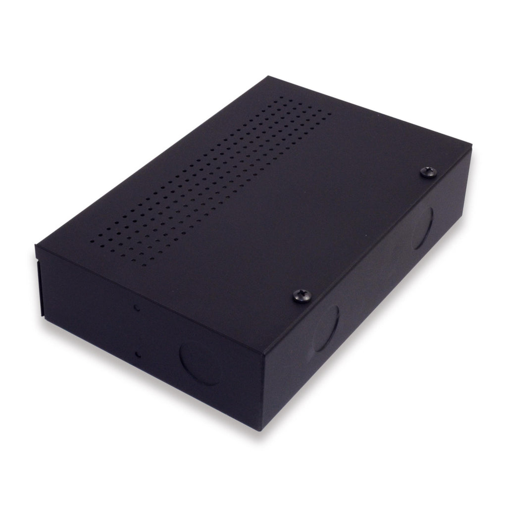 A low-profile and rugged steel enclosure that complies with electrical codes requiring junction boxes to separate household and low voltage wiring.