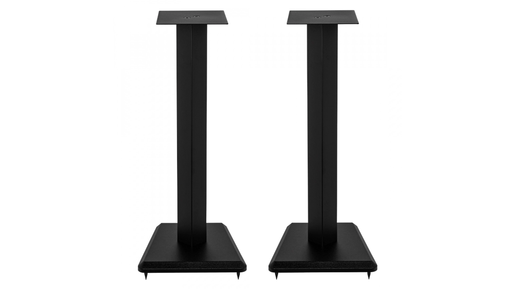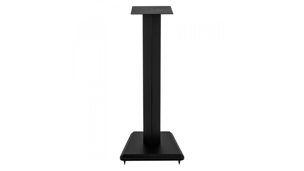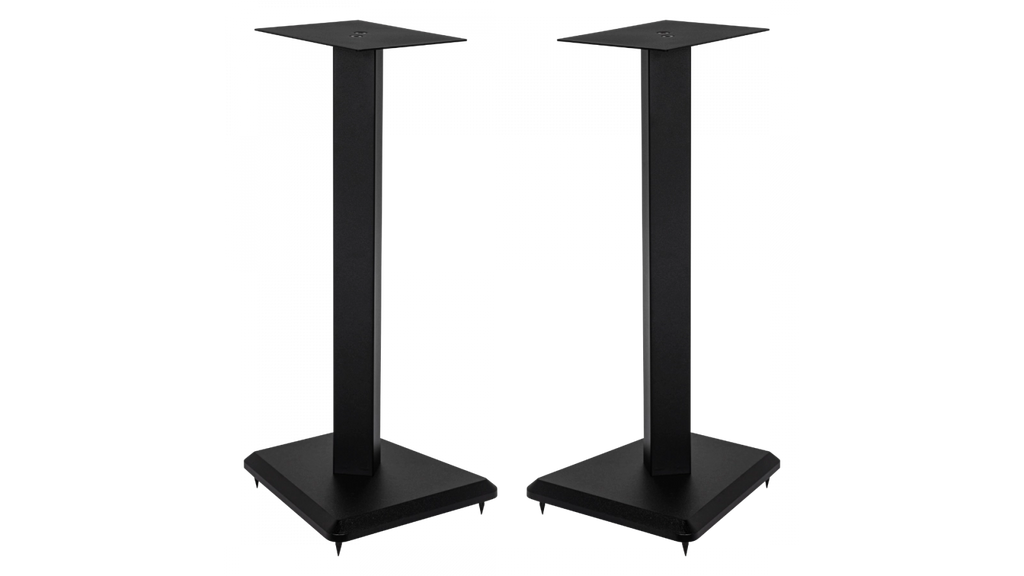 The LS-10 speaker stands has been custom designed to match the our Debut 2.0 and Uni-Fi 2.0 lines of speakers. The 6” x 8.5” steel top plate ensures a good fit with either of these series. The included rubber bumpers further help dampen cabinet vibrations. The stand itself is constructed from an aluminum center column with a steel top plate and a substantial 1” thick MDF base plate. The mass of the base plate adds extra stability to the stand. The stand comes equipped with both spikes and adjustable rubber feet allowing use on either carpet or solid floors.