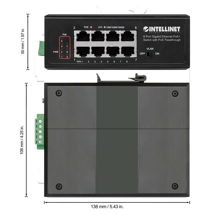 Intellinet 561624 Industrial PoE-Powered 8-Port Gigabit Switch with PoE Passthrough