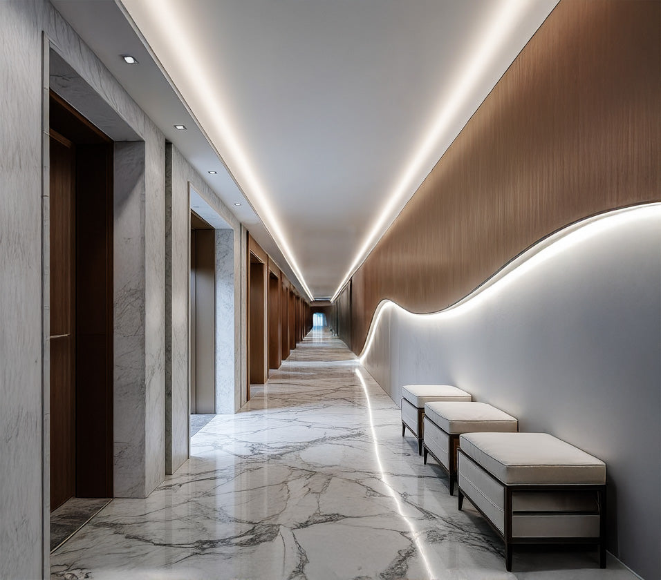 The Luxline Accent 1515V is a line voltage 120V flexible silicone channel that bends up and down on the vertical axis. It provides a beautifully diffused uniform linear light. Designed to illuminate along curved surfaces. Resistant to water and UV light.
