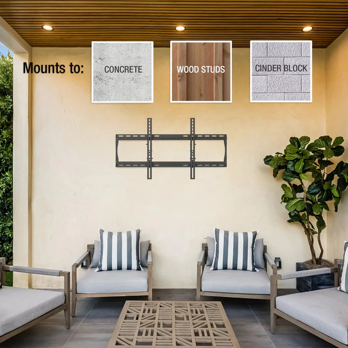 The Neptune™ Outdoor Universal Tilt Wall Mount is the ideal mounting solution for Neptune™ Outdoor TVs. This all-season mount is specially coated with a protective anti-corrosive e-coating that repels against damaging temperature-related and outdoor corrosive elements. In addition to simple installation with a Hook-and-Hang™ design, this mount offers tilt functionality while keeping the TV a mere 2.64" (67mm) from the wall. The One-Touch™ tilt feature offers +15°/-5° vertical tilt movement to lock the TV at your ideal viewing angle. Tamper-resistant hardware deters theft, offering peace-of-mind with every installation and for additional security, the mount has accommodations for optional padlocks.