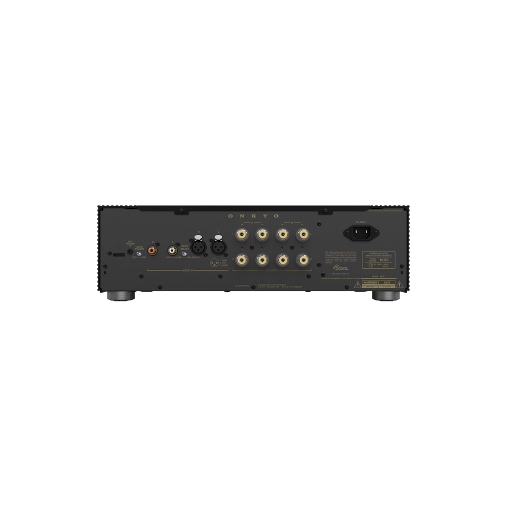 The Onkyo M-80 Power Amplifier features custom high current power supply to provide, dynamic full-range sound, and an extrusion aluminum heat sink that suppresses vibration. The addition of high-quality 10000uF capacitors custom-made exclusively for Onkyo, Hi-Fi grade terminals (both speaker output and audio input terminals), copper bus bars, and a robust vibration-proof front panel ensure powerful, world-class playback.