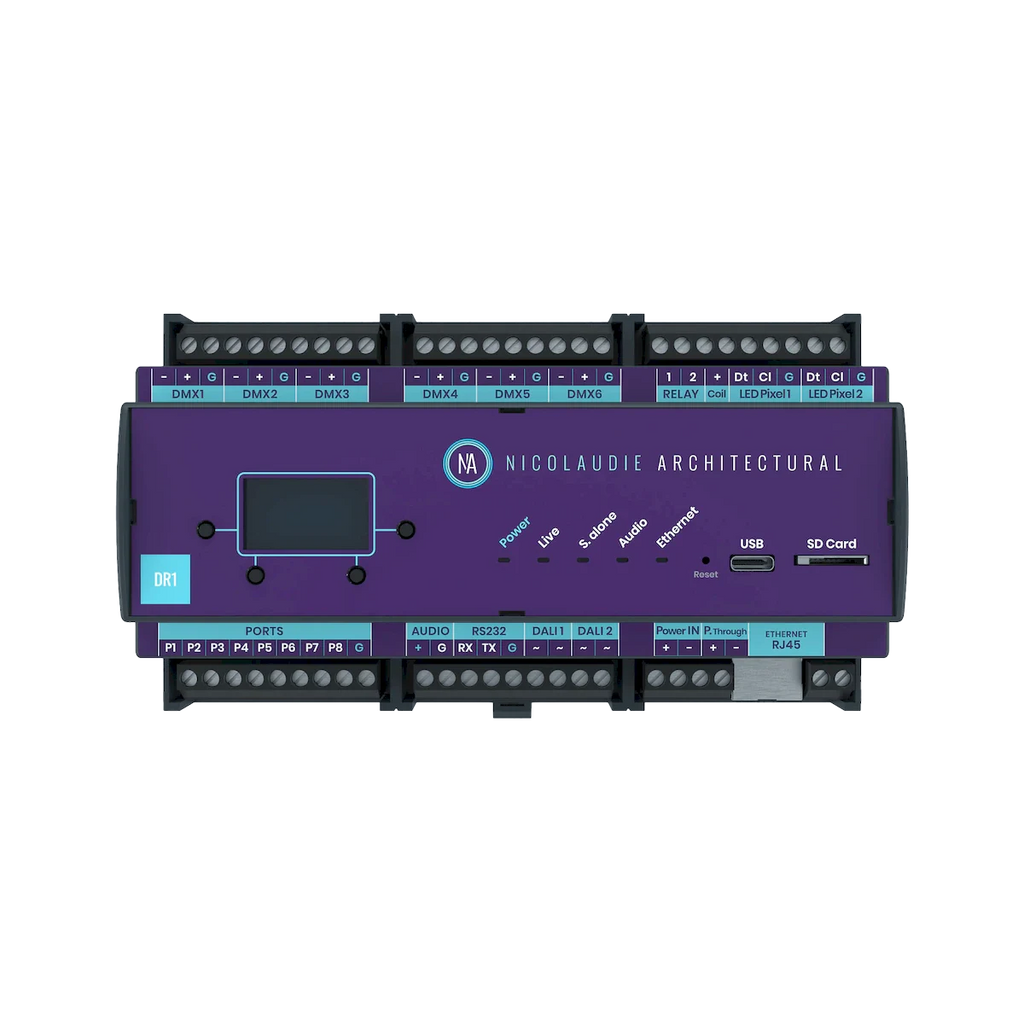 Proluxe PLX-DMX-N-DINADR1 SO: 3072CH, CLOUD, USB, ETHERNET, DALI, AUDIO, 2000 SCENES, 20 ZONES, INCLUDES POWERDIN 12V ADAPTER - DIN RAIL