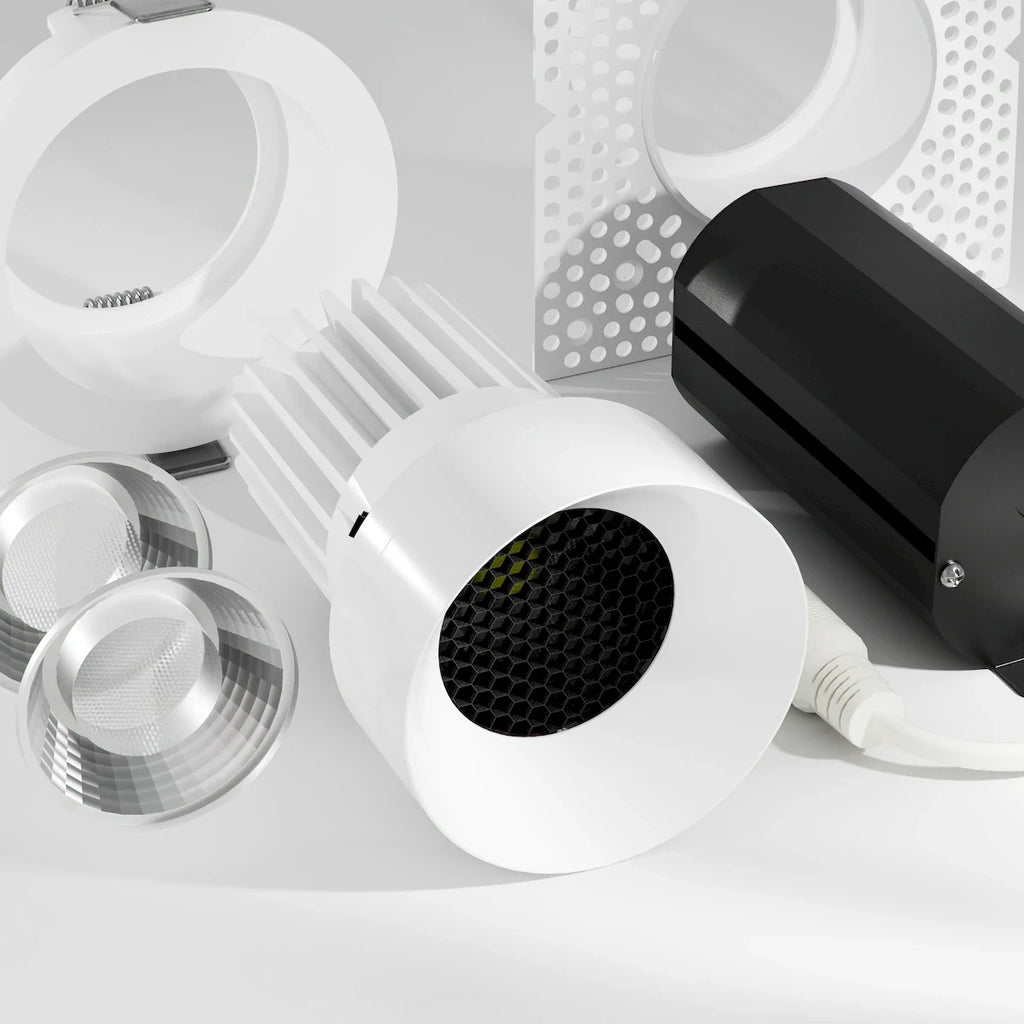 Proluxe PLX-RHYM-DLR-THNC-15-36-5CCT-3-WH TIR LENS DEEP BAFFLE + HONEYCOMB, 3" ROUND SEAMLESS MODULE W/ MUD-RING & TRIM-RING, 15W, 24degree BEAM ANGLE, 36degree & 60degree FIELD CHANGEABLE OPTICS, WHITE FINISH, 5CCT (2700K/3000K/3500K/4000K/5000K)