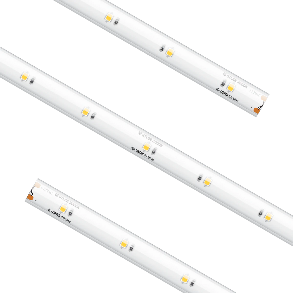 Proluxe PLX-STL68-30K-12VAC-16 16.4FT REEL 12V AC IP68 WARM WHITE TAPE 3000K ONE END WITH 1FT MALE AND THE OTHER END WITH 1FT FEMALE. INCLUDED IN POUCH: 6FT FEMALE TO BARE WIRE CONKIT, 6FT MALE TO BARE WIRE CONKIT, 15 "F" CLIPS & 2 END CAPS