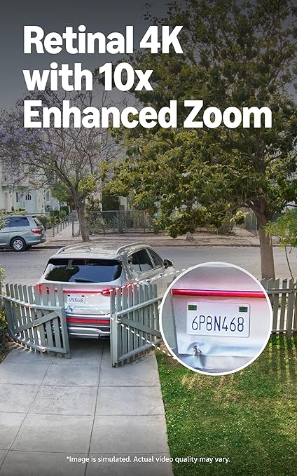 - Capture detail even at a distance — See your home or business in the ultimate clarity and inspect faces and license plates with wide-angle, Retinal 4K video and up to 10x Enhanced Zoom. (Video quality may vary based on internet bandwidth and device temperature.)