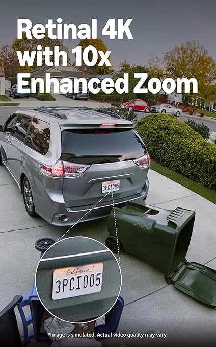 - Capture detail even at a distance — See your home or business in the ultimate clarity and inspect faces and license plates with wide-angle, Retinal 4K video and up to 10x Enhanced Zoom. (Video quality may vary based on internet bandwidth and device temperature.)