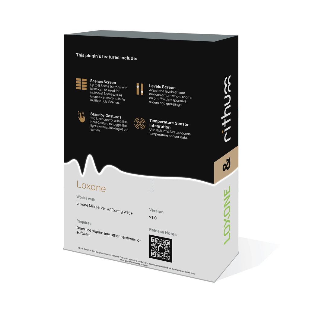Integrate Rithum Switch with Loxone. This plugin provides support for the scenes screen and levels screen, plus offers standby gestures and exposes Rithum’s temperature data via API.