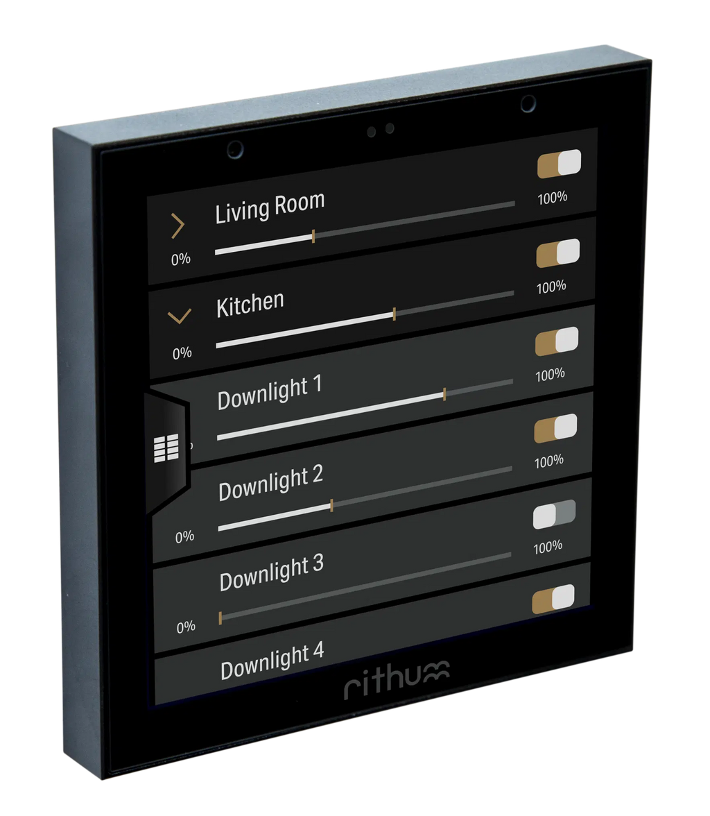 Out-of-the-box Rithum Switch Pro offers Philips Hue smart lighting and Sonos audio control. Plus, with temperature sensing built in, Rithum Switch Pro includes Rithum Stat climate control and comes with our new Rithum Stat Scheduling screen.