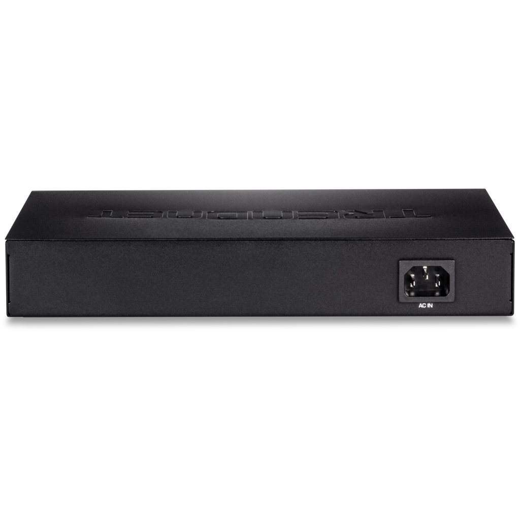 - Sturdy metal desktop switch with built-in power supply