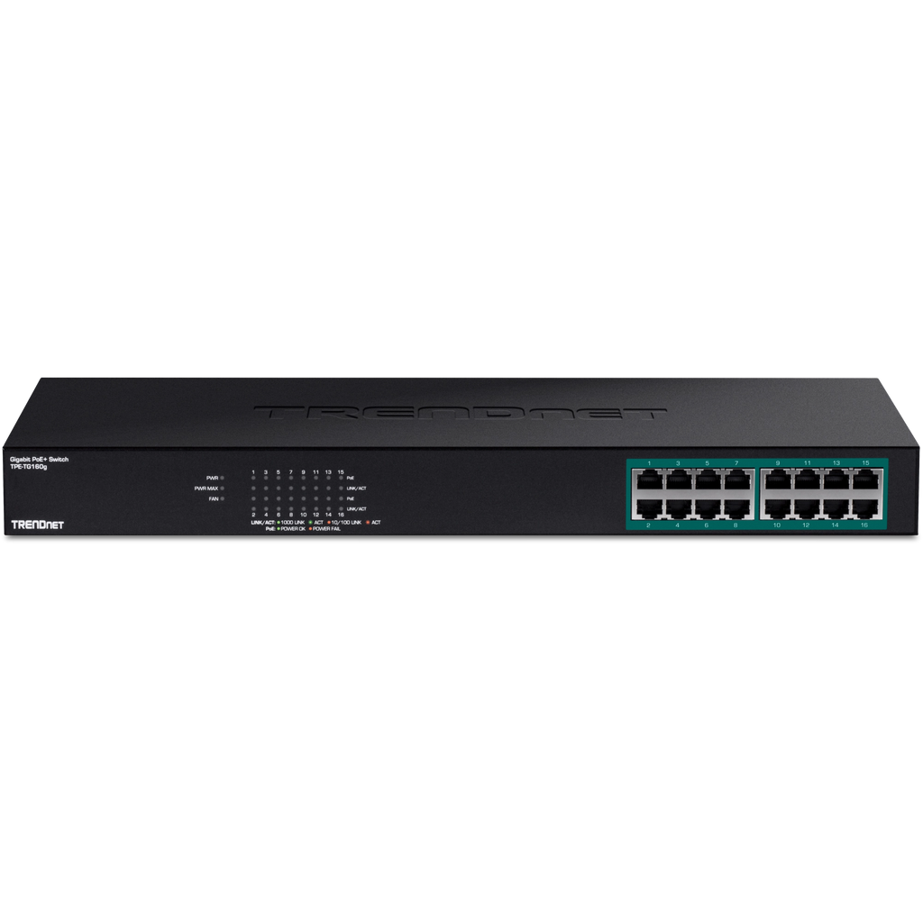 TRENDnet TPE-TG160g 16-Port Gigabit PoE+ Switch, 246W PoE Budget