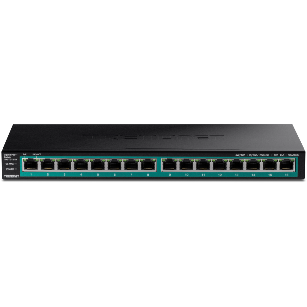 TRENDnet TPE-TG161H 16-Port Gigabit PoE+ Switch, 120W PoE Budget