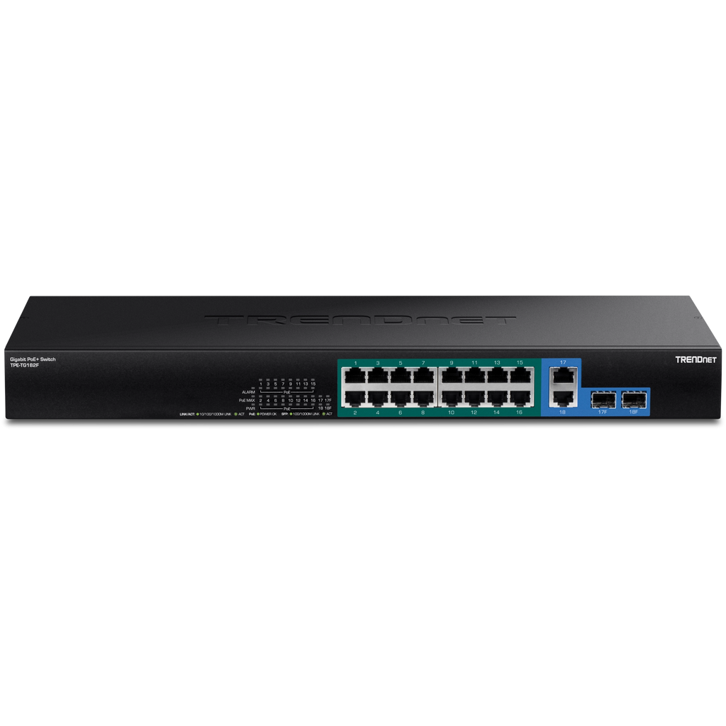 TRENDnet TPE-TG182F 18-Port Gigabit High-Power PoE+ Switch, 440W PoE Budget