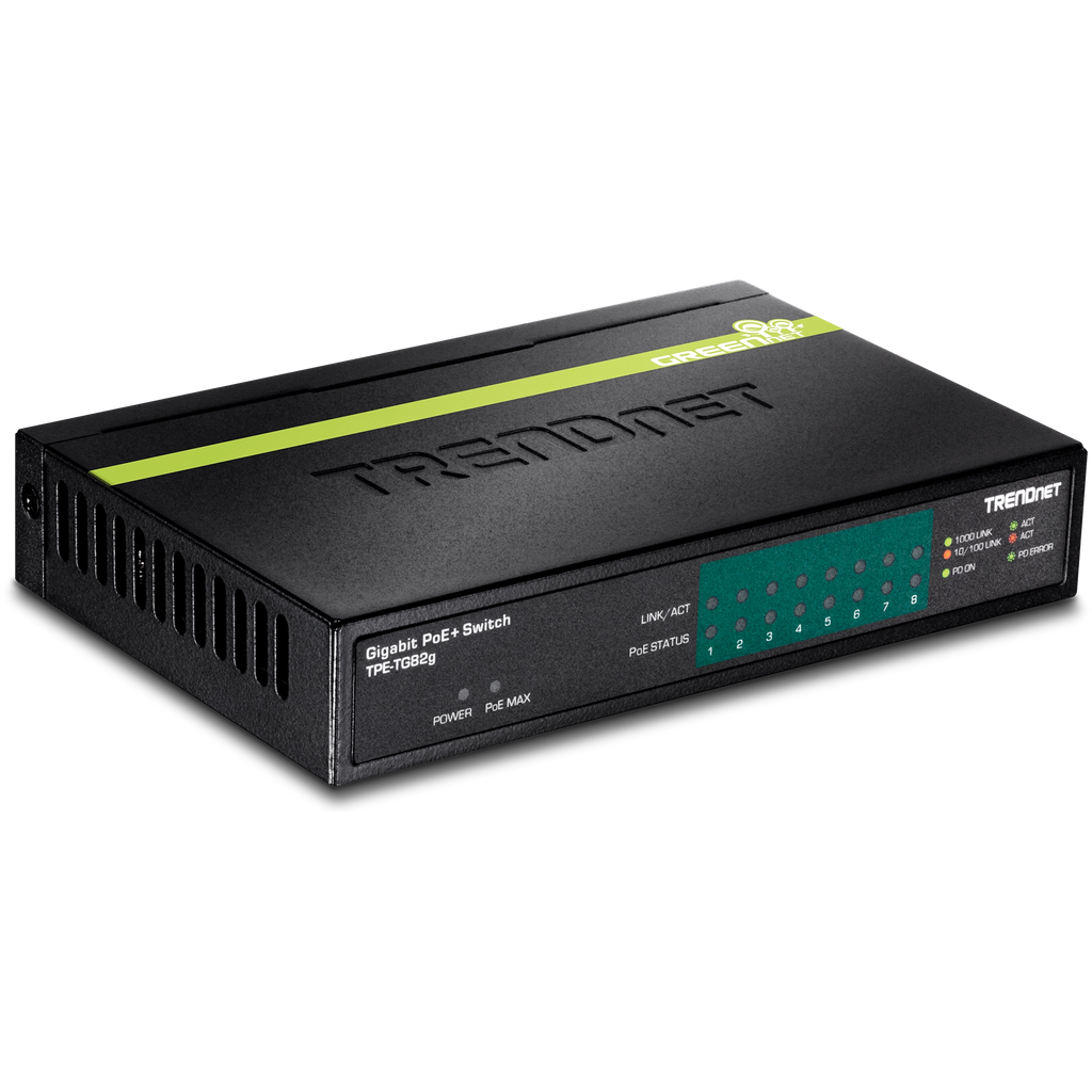 TRENDnet TPE-TG82G 8-Port Gigabit PoE+ Switch, 61W PoE Budget