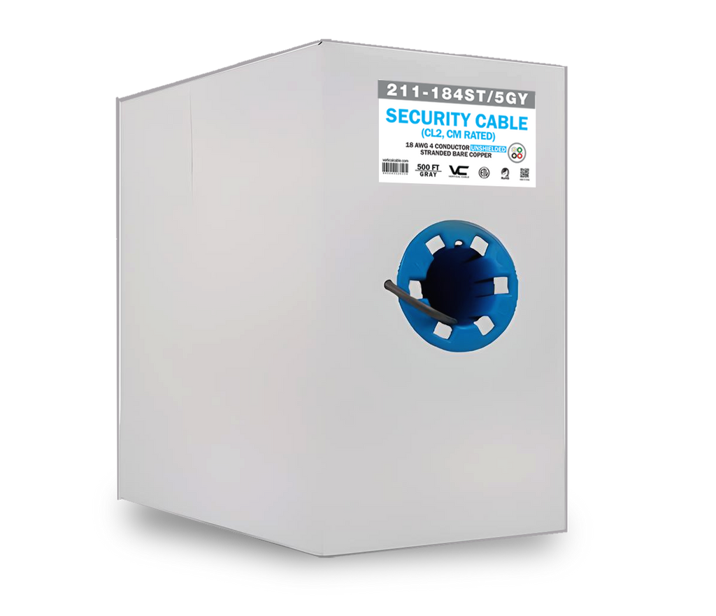 Vertical Cable 211-184ST/5GY Alarm-Security Cable, Unshielded, 18AWG, 4 Conductor Stranded, 500 ft, Pull Box, Gray