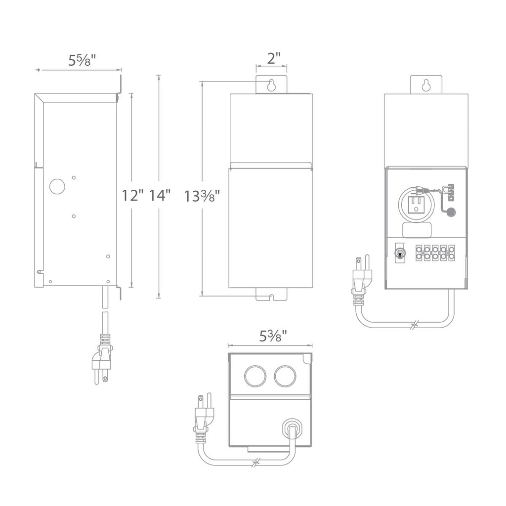 - Outdoor rated stainless steel transformer contains an outdoor rated 3-prong plug for power